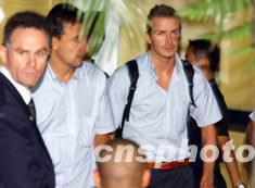 星光奪目的皇家馬德里足球隊明星貝克漢姆八月六日抵港,受到千余名球迷歡迎。中新社記者:潘索菲