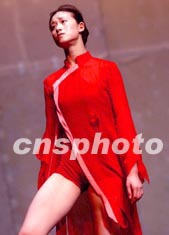 八月初正在北京苦練中央芭蕾舞團新版《大紅燈籠高高掛》的女主角朱妍,身著法國服裝設計大師布倫的新作,在足尖旗袍共舞中展示人體的美妙,充分表現(xiàn)東方悲劇命運的感情變化。中新社記者:賈國榮