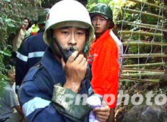 中國重慶沙坪壩區(qū)青木關(guān)鎮(zhèn)燕灣煤礦八月七日十一時三十分,發(fā)生嚴(yán)重的透水事故,19名礦工被困井下,現(xiàn)已救出7人。目前當(dāng)?shù)卣扇【o急措施,搜救另外12名被困井下的礦工。中新社 圖