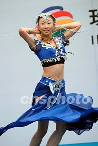 一百多名佳麗參加了比賽,眾多市民觀看了這場(chǎng)魅力十足的比賽。中新社記者:盛佳鵬  參賽模特表演印度舞蹈。中新社記者:盛佳鵬
