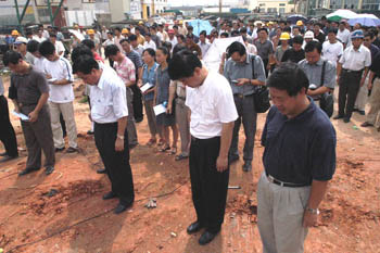 張昌平市長(zhǎng)、潘世建副市長(zhǎng)、徐模副市長(zhǎng)等全體參加會(huì)議人員向7位死難者默哀。