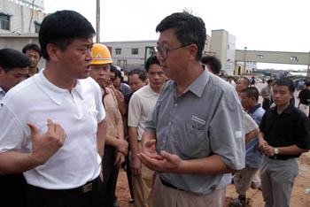 張昌平市長(zhǎng)激動(dòng)地說(shuō):“有人說(shuō)我是‘張鏟平’,如果這些違章建筑早發(fā)現(xiàn)早鏟平,就不會(huì)有今天的慘劇發(fā)生,嚴(yán)是對(duì)老百姓的愛(ài),松是對(duì)老百姓的害!  張昌平對(duì)欲承租的群鑫機(jī)械廠(chǎng)的工會(huì)主席說(shuō),賺錢(qián)要有良心。海峽導(dǎo)報(bào)記者 凌云攝