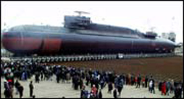 中新網(wǎng)8月10日電 俄羅斯《消息報(bào)》8月8日?qǐng)?bào)道說(shuō),近日,在俄羅斯白海海畔北德文斯克“北方機(jī)器制造企業(yè)”的船塢上,當(dāng)著俄羅斯海軍總司令弗拉基米爾.庫(kù)羅耶多夫的面,俄羅斯的一艘世界上絕無(wú)僅有的核潛艇順利地下水了!
