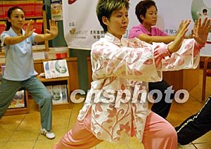 香港太極名家李暉,八月十一日在香港舉行的首本著作《簡易太極圖書》發(fā)布會(huì)上,示范二十四式簡易太極拳。中新社記者:錢興強(qiáng)