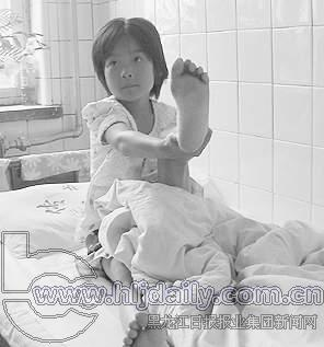 馮佳緣今年11歲,在齊齊哈爾市和平二小讀書,開學(xué)念四年級,是這次芥子毒劑桶泄露中毒事件中第35個(gè)入203醫(yī)院治療的患者。也是目前事故的第11現(xiàn)場———齊齊哈爾市第五中學(xué)現(xiàn)場惟一一個(gè)中毒者。記者在病房見到她的時(shí)候,醫(yī)生正在給她換藥、清創(chuàng)。醫(yī)生一再安慰她別怕疼。但在藥快換完的時(shí)候,馮佳緣還是沒能忍住、哭出了聲兒。換完藥后,馮佳緣告訴記者,4日晚上,她只是在5中的操場上路過,結(jié)果第二天腳起泡了,然后去住院,直到前天她看到報(bào)紙后,才轉(zhuǎn)到203醫(yī)院救治,現(xiàn)在馮佳緣的病情已稍有好轉(zhuǎn)。