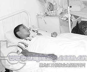 王磊今年14歲,齊齊哈爾市28中學(xué)學(xué)生,開學(xué)上初中二年級,他和父親王宇亮住在一個(gè)病房里,父子二人病情都較重,雖然現(xiàn)在二人的病情都已經(jīng)開始好轉(zhuǎn),但離治愈出院還有一段時(shí)期。王磊告訴記者,當(dāng)天12時(shí)許,他爸爸把土卸下來之后,直接就鋪在院子過道上,由于有點(diǎn)濕,還不很平整,爸爸卸完土后,王磊就用腳平整,并墊了兩塊木板。因?yàn)槟切┩林杏泻芏嗉?xì)砂子,踩上去很舒服,他就把鞋脫了,又玩了一會(huì)兒,12時(shí)30分左右,因?yàn)橹比パa(bǔ)英語課,他沒有洗腳直接穿上鞋就去上課了。上課過程中,他就覺得腳火燒一樣地疼,15時(shí)許,他回到家把鞋脫了,發(fā)現(xiàn)腳已經(jīng)全紅了,第二天早晨,他腳上就起了大的水泡,又疼又癢,然后住進(jìn)203醫(yī)院。據(jù)王磊的醫(yī)生介紹,王磊的情況要重于其他孩子,可能需要手術(shù)治療。