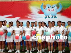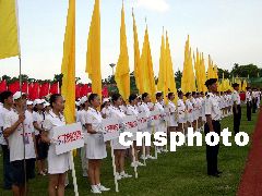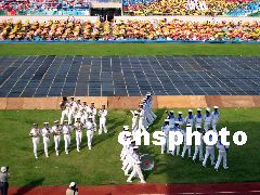 2003年8月10日下午5時,以《青春放飛新世紀(jì)》為主題的廣東省第六屆大學(xué)生運動會開幕式在湛江師范學(xué)院體育場進(jìn)行第二次預(yù)演,規(guī)?涨,精彩紛呈。熱烈、奔放、高昂、大氣的格調(diào)令人耳目一新。李滿青 攝