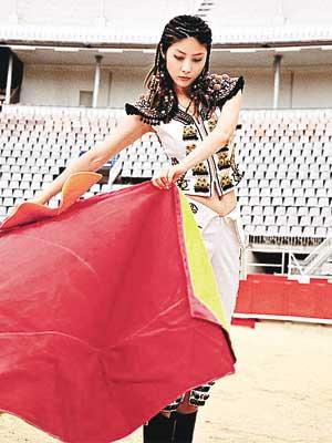 中新網(wǎng)8月13日電 香港著名歌手陳慧琳(Kelly)早前在西班牙拍攝新碟封套,穿上重達(dá)數(shù)十磅的斗牛勇士裝上陣,威風(fēng)凜凜!香港媒體報(bào)道,Kelly的美貌更吸引在場斗牛士向她求愛,令她尷尬不已!