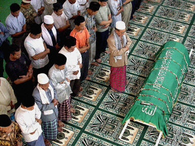 圖:雅加達(dá)萬豪酒店爆炸案遇難者舉行葬禮