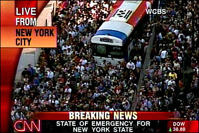 美國各大電視網(wǎng)全部現(xiàn)場直播,從畫面上看,紐約街道和高速公路大塞車,市民紛紛涌上街頭,把主要街道擠得水泄不通。最新傳來的消息說,紐約的電話、地鐵、航空、交通指揮系統(tǒng)全部陷于停頓;曼哈頓的一個(gè)電廠和十四街地鐵站變壓器因?yàn)閿嚯娨l(fā)煙火,更引起市民憂慮。本社記者記者試圖與紐約分部的記者電話聯(lián)系,但無法聯(lián)通。