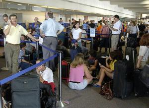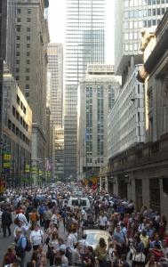 紐約市內(nèi)街道上擠滿車輛,動彈不得。位于三十四街和第七大道口的賓州車站一片漆黑,街上擠滿了人。