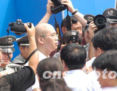 北京地壇醫(yī)院八月十六日送走最后兩位非典患者康復(fù)出院,撤銷紅色隔離線恢復(fù)門診。中新社記者:賈國榮