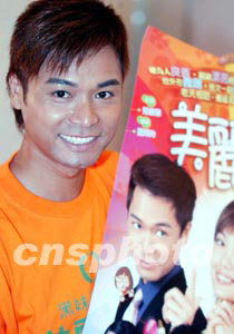 香港無(wú)線電視小生郭晉安向觀眾贈(zèng)送劇目海報(bào)。