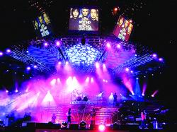 BEYOND三子來京做宣傳時,已向歌迷透露:演唱會當(dāng)天,將采用高科技手段讓去世的家駒和自己同臺演唱。據(jù)悉,科技人員將運用3D原理“克隆”出一個和真人別無二致的“黃家駒”,然后在舞臺中央設(shè)置一個經(jīng)過特殊處理過的紗幕,通過高清晰投影儀將家駒的影像投射在上面。當(dāng)晚歌迷可以看到家駒親切地和大家打過招呼后,與BEYOND三子共同唱起自己的遺作《抗戰(zhàn)20年》的場景。此次“超越BEYOND”演唱會的舞臺也要讓京城的歌迷開眼。據(jù)歌華太陽公司負責(zé)人介紹,他們這次選用了科技含量非常高的旋轉(zhuǎn)升降子母臺,就是在巨大的舞臺內(nèi)部還“包”著一個可以自由伸縮升降甚至旋轉(zhuǎn)的子舞臺。為了方便觀看,在舞臺上還設(shè)置了兩塊巨大的LED以及三塊大屏幕投影。為保證音響效果,BEYOND演出使用的樂器、效果器和壓縮器等也將從香港空運來京。