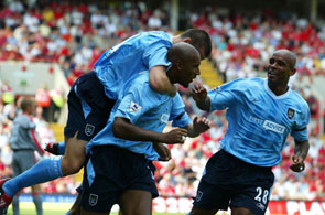 曼城隊(duì)一上來就讓對(duì)手驚出了一身冷汗。福勒在第2分鐘就有一次射門,查爾頓隊(duì)門將羅伊斯用指尖將這次射門挑出。曼城隊(duì)士氣大增,繼續(xù)向?qū)κ职l(fā)動(dòng)攻擊。第12分鐘,曼城隊(duì)中場(chǎng)球員菲利普斯被對(duì)方后衛(wèi)巴克爾放倒,阿內(nèi)爾卡主罰點(diǎn)球命中。