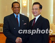 中新社北京八月十八日電(記者齊彬)中國(guó)國(guó)務(wù)院總理溫家寶今天會(huì)見了到訪的第五十八屆聯(lián)合國(guó)大會(huì)當(dāng)選主席、圣盧西亞外交、國(guó)際貿(mào)易和民航部長(zhǎng)朱利安·亨特。賓主雙方就當(dāng)前國(guó)際形勢(shì)、如何在和平與發(fā)展領(lǐng)域發(fā)揮聯(lián)合國(guó)的作用等問題交換了看法。