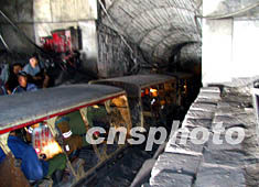 山西大同杏兒溝煤礦八·一一礦難的救援隊(duì)員,八月十四日下午攜帶防爆數(shù)碼攝像機(jī)、照像機(jī),再次進(jìn)入特大瓦斯爆炸現(xiàn)場(chǎng),進(jìn)行調(diào)查取證。作者:王煥偉