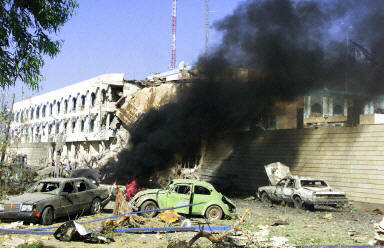 當(dāng)?shù)貢r(shí)間8月19日16:40左右(北京時(shí)間8月19日20:40左右),設(shè)在伊拉克首都巴格達(dá)運(yùn)河酒店的聯(lián)合國(guó)辦事機(jī)構(gòu)總部發(fā)生強(qiáng)烈爆炸,造成三人死亡,數(shù)十人受傷。有證據(jù)表明爆炸是汽車炸彈造成的。