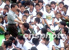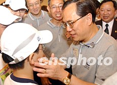 曾蔭權(quán)出席香港少年警訊滅罪夏令營(yíng)活動(dòng),受到少年們的熱烈歡迎。中新社記者:錢興強(qiáng)