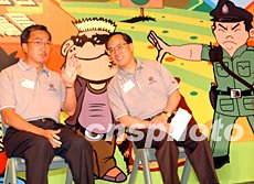 香港政務(wù)司司長(zhǎng)曾蔭權(quán)、警務(wù)處長(zhǎng)曾蔭培出席香港少年警訊滅罪夏令營(yíng)活動(dòng)。中新社記者:錢興強(qiáng)