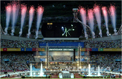 據(jù)新華網(wǎng)消息,繼北京成功舉辦第二十一屆世界大學(xué)生運(yùn)動(dòng)會(huì),國(guó)際大體聯(lián)在新世紀(jì)之初第二次選擇了亞洲。經(jīng)過(guò)兩年不懈的努力,只有200多萬(wàn)人口的大邱將一幅精心繪制的青春畫(huà)卷展現(xiàn)在了來(lái)賓面前。韓國(guó)總統(tǒng)盧武鉉21日晚在這里宣布大運(yùn)會(huì)開(kāi)幕,標(biāo)志著亞洲體育走向世界的步伐正在加快,而世界對(duì)亞洲的認(rèn)同也正趨于一致。