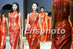 身著喜慶大紅旗袍的四十余名模特佳麗,二十三日在江西省會南昌市的T型臺上進行緊張排練,她們將參加當日舉行的新絲路模特大賽南昌賽區(qū)總決賽。中新社記者:毛建軍