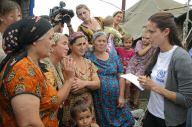 作為聯(lián)合國(guó)難民事務(wù)高級(jí)專員公署的“親善大使”,好萊塢影星安吉莉娜·朱莉22日探訪了俄羅斯北高加索地區(qū)靠近車臣邊境的貝拉難民營(yíng),受到車臣難民的熱情歡迎。朱莉自從2001年被聯(lián)合國(guó)難民署任命為“親善大使”以來,已經(jīng)實(shí)地訪問了世界多個(gè)國(guó)家的難民營(yíng)。