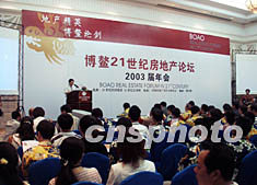 博鰲二十一世紀(jì)房地產(chǎn)論壇二00三屆年會(huì)二十三日在海南博鰲隆重開幕,來自全國各地的房地產(chǎn)公司老總出席,論壇主題為“金融緊縮下的中國房地產(chǎn)。作者:莫成雄