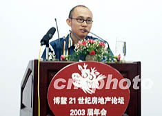 博鰲二十一世紀(jì)房地產(chǎn)論壇二00三屆年會(huì)二十三日在海南博鰲隆重開幕,SOHO中國董事長潘石屹在論壇上演講。作者:莫成雄
