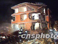 福建省閩侯縣上街鎮(zhèn)沙堤村德州路一民居8月26日22時(shí)30分許發(fā)生大爆炸,爆炸中心方圓約60米內(nèi)的木結(jié)構(gòu)民居全部倒塌,并使一座4幢樓房被毀。至27日上午11時(shí),救援人員在爆炸現(xiàn)場已找到12具尸體。中新社 圖