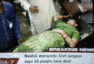 克里帕什安卡稱,數(shù)千名朝圣者齊聚馬哈拉什特拉邦納什科鎮(zhèn),按照慣例他們將在附近的哥達(dá)瓦里河進(jìn)行一種具有宗教色彩的“沐浴”,當(dāng)大量人群沖進(jìn)當(dāng)?shù)鬲M窄的街道向河岸跑時(shí),發(fā)生了這一幕慘劇。