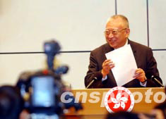 香港特首董建華8月28日在出席深港西部通道的奠基典禮后,在香港政府總部召開記者會(huì),轉(zhuǎn)達(dá)國務(wù)院副總理曾培炎對(duì)港粵經(jīng)驗(yàn)合作的重視和對(duì)香港經(jīng)濟(jì)的支持。作者:洪少葵