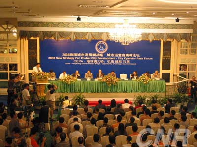 中新網(wǎng)8月31日電 “2003珠海城市發(fā)展論壇”8月31日在珠海舉行,來(lái)自香港、澳門(mén)、珠海以及國(guó)內(nèi)其他地方共400多名專(zhuān)家、學(xué)者和社會(huì)各界人士就粵港澳三地經(jīng)濟(jì)的融合與發(fā)展、港珠澳大橋的興建以及珠海未來(lái)發(fā)展等問(wèn)題各抒已見(jiàn),現(xiàn)場(chǎng)氣氛十分熱烈。
