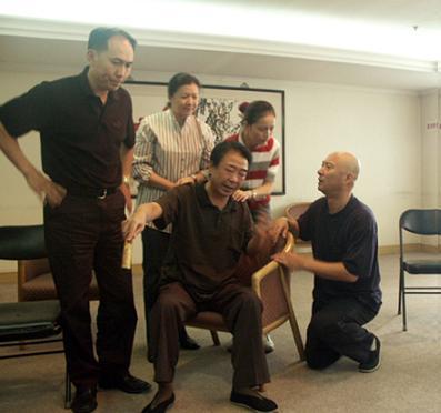 舞臺功力深厚的張喜前把原本喜劇色彩不太濃的大順設計得有聲有色。而老爺子張辛元11歲就拜師學曲藝,說學逗唱一身的絕活。這次在劇中扮演的劉大爺?shù)膽蚍莘浅V,而在排練中,性格開朗的老張也常常是戲里戲外制造笑聲的關(guān)鍵人物。