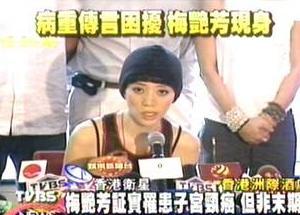 中新網(wǎng)9月5日電 藝人梅艷芳的健康狀況,最近成了香港熱門的八卦話題。有媒體言之鑿鑿說,這位香港歌壇的大姐大已身患重病。今天下午,梅艷芳在好友劉德華、張學(xué)友等圈中好友陪同下舉行記者會(huì),說明自己的健康狀況,她坦承自己罹患了子宮頸癌。