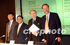 中銀香港﹙控股﹚有限公司于9月5日舉行專責(zé)委員會調(diào)查報告新聞發(fā)布會,就周正毅貸款調(diào)查報告及新農(nóng)凱事件,響應(yīng)記者問題。圖為【右起】專責(zé)委員會特別顧問費(fèi)蘭特、召集人梁定邦、馮國經(jīng)及單偉建出席記者會。作者:洪少葵