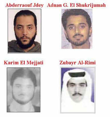 據(jù)報(bào)道,這4名男子中兩人來(lái)自沙特阿拉伯,另外兩人分別來(lái)自摩洛哥和突尼斯。其中28歲的沙特男子舒克里朱馬是“基地”組織的一個(gè)策劃者,其地位與“9·11”事件主要策劃者阿塔相似。