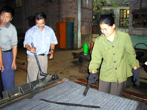 山東省德州市晶華集團(tuán)晶峰福利機(jī)構(gòu)分廠聾啞人夫婦滕立強(qiáng)和李紅在上班。華夏時報圖