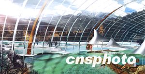 在四川省著名風(fēng)景區(qū)九寨溝旁邊二十公里的甘海子森林里,今秋時節(jié)正在為明年的世界環(huán)境與發(fā)展論壇建造國際會議度假中心。圖為全透明玻璃結(jié)構(gòu)的溫泉中心工地。中新社記者:賈國榮