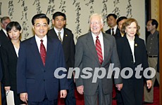 卡特表示他很高興有機(jī)會(huì)再次訪(fǎng)華同胡主席結(jié)識(shí),他回顧了一九七九年他同鄧小平副總理歷史性的會(huì)晤以及后來(lái)觀(guān)摩中國(guó)村民委員會(huì)成功進(jìn)行選舉的經(jīng)歷,他還介紹了卡特中心在許多國(guó)家開(kāi)展的工作。
