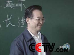 最后,溫家寶來到著名的北京第二實驗小學(xué),到教研室看望教師,向他們祝賀節(jié)日。在五年級教研室里,他看到墻上寫著“用百分之百的熱情去解決百分之一的問題”,當(dāng)即用筆記下來,并連聲稱贊這句話好。
