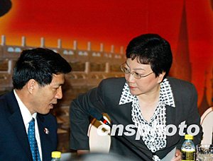 鄧小平之女鄧榕(圖右)以中方副主席身份出席會議。中新社記者:滿會喬
