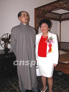 孫中山大元帥府紀念館全面開放暨門樓修建落成典禮儀式,十日在廣州孫中山大元帥府舊址舉行,孫中山的孫女孫穗芳專程回穗參加該項活動,并在館內與祖父的塑像合影留念。作者:劉衛(wèi)勇