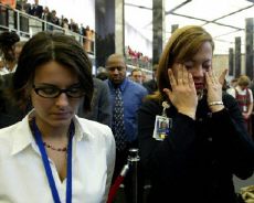 數(shù)千人自發(fā)地來到世貿(mào)中心遺址敬獻鮮花。美東時間上午八點四十六分和九點○三分,人們兩次默哀。那是兩年前,兩家飛機撞向世貿(mào)雙塔的時刻。孩子們逐個宣讀兩千七百九十二名紐約遇難者的名單。這些孩子都有親屬在那場恐怖襲擊中遇害。