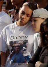 為救別人而犧牲的紐約救火隊員的母親莫納德女士悲哀地說:“淚在腮邊,我吻你。我最小的兒子,你離去了!