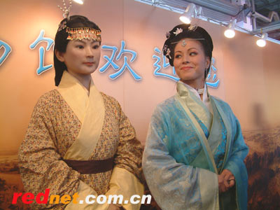 中新社長沙九月十二日電(豐冰余婭琳)“真還有點像呢!薄八坪跻膊皇呛芟癜?”作為“二00三年中國湖南旅游節(jié)”重頭戲之一的湖南旅游博覽會今日下午剛一開幕,展會一隅便立即被圍得水泄不通,一位長相俏麗的年輕女孩成為了眾人關(guān)注的焦點,觀眾爭相對這位傳聞中西漢長沙國丞相夫人辛追的后裔評頭論足。