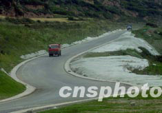 中國(guó)在著名觀光勝地四川省九寨溝新建的機(jī)場(chǎng),即將在九月二十八日通航。暢通的機(jī)場(chǎng)高原公路兩邊采用薄膜養(yǎng)草術(shù)保護(hù)環(huán)境。中新社記者:賈國(guó)榮