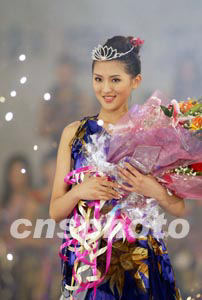2003年新絲路模特大賽總決賽十四日晚在三亞天涯海角舉行,來自湖南的十七歲佳麗肖青奪得冠軍。中新社記者:毛建軍