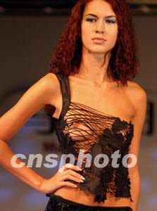 香港服裝設(shè)計協(xié)會副主席馬偉明設(shè)計的前衛(wèi)女內(nèi)衣,十七日在青島國際時裝周上展示。中新社記者:宋吉河