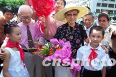 中新社永春九月十九日電 (記者陳悅)返鄉(xiāng)謁祖的余光中先生今日在永春牛姆林參加了鄉(xiāng)親們?yōu)槠浣⒌奈膶W紀念館揭牌儀式,當日中午他離開永春,并搭乘下午的班機轉(zhuǎn)機澳門返回臺灣高雄。